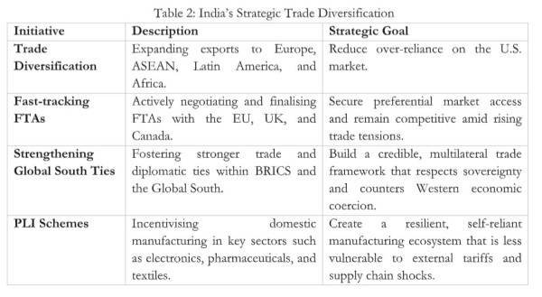 To mitigate the impact of the tariffs and build long-term resilience, India is actively pursuing a strategy of diversification over dependence. The nation is expanding its export destinations to new geographies such as Europe, ASEAN, Latin America, and Africa. This push is supported by the fast-tracking of Free Trade Agreements (FTAs) with key partners such as the EU and the UK, which are expected to provide preferential market access and reduce India's reliance on the U.S. Furthermore, India is strengthening its ties with the Global South and the BRICS partnership, which offer a credible alternative to the Western-centric trade order by respecting mutual sovereignty and fostering a multipolar world.